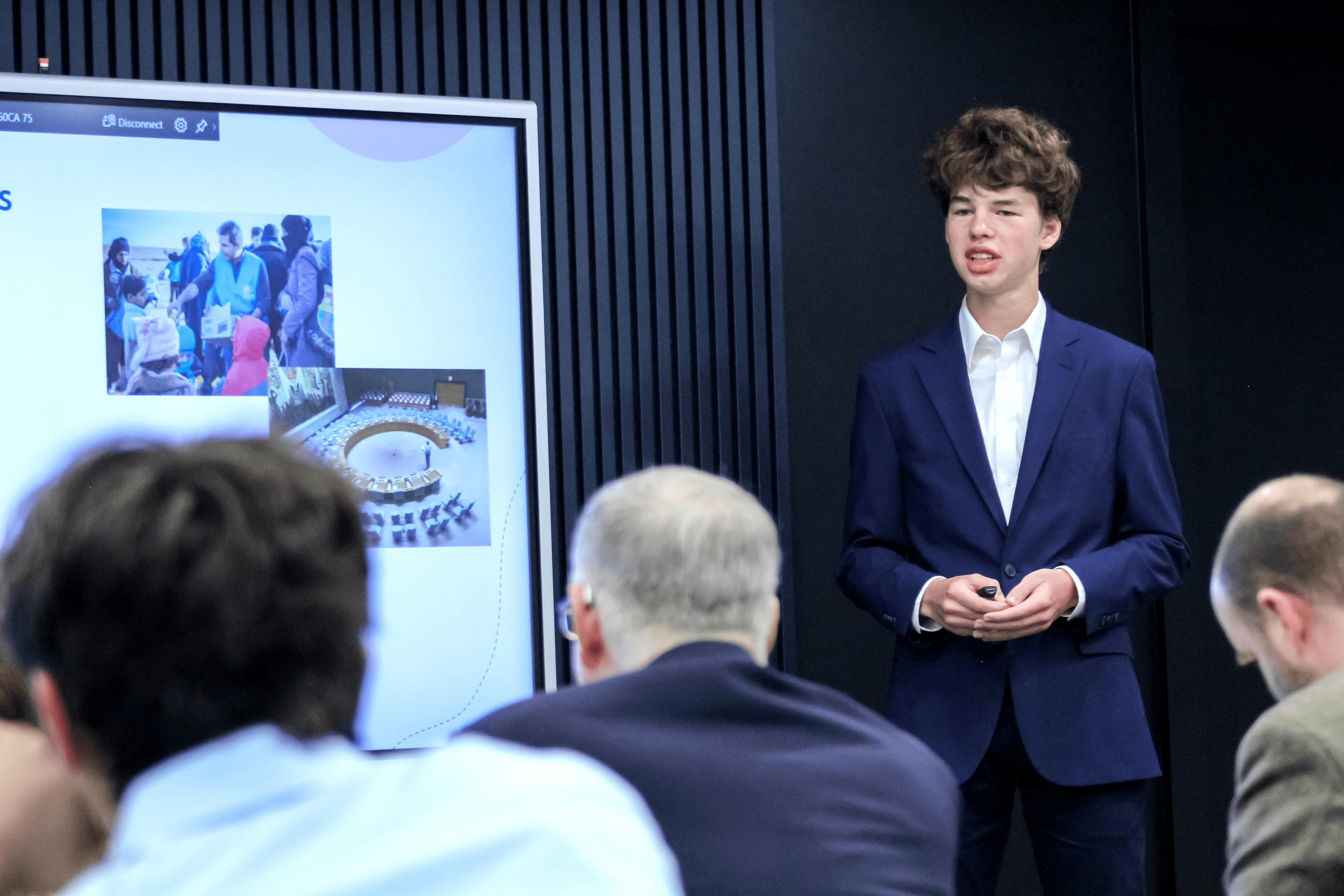 Fourteen students from nine high schools across Philadelphia and its surrounding suburbs delivered in-depth, self-directed capstone presentations on pressing global issues, such as: